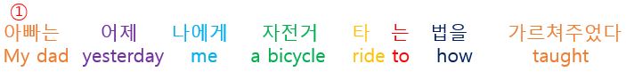 아빠는 어제 나에게 자전거 타는 법을 가르쳐주었다.