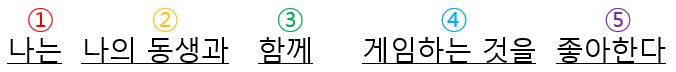 공식-4, 문장 제일 뒤에 있는 순서 2번을 기준으로 그 왼쪽에 있는 단어에 3번부터 차근차근 순서를 부여해준다.