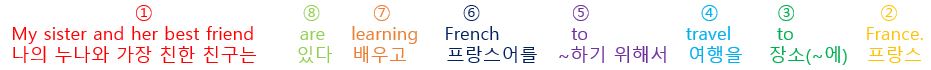둘째, 각각의 단어에 "영어독해 공식"에 따라서 단어의 나열 순서를 정해줍니다.