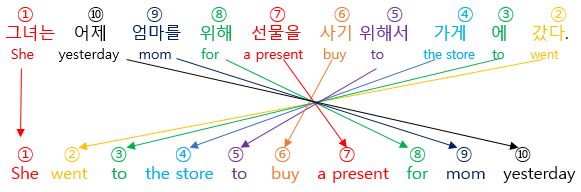 둘째는 각각의 단어에 "영어작문 공식"에 따라서 단어의 나열 순서를 정해줍니다.