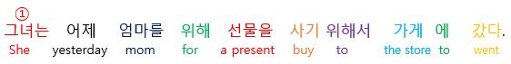 위해서 to(“~다”로 끝나는 동사 결합해서 = 사기(사다)+위해서)