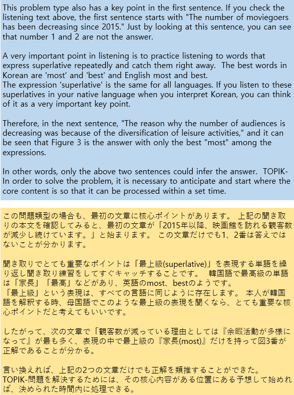 外国人対象の韓国語能力試験TOPIK1、2聞き取りおよび読解テスト対応戦略の秘訣を初公開。