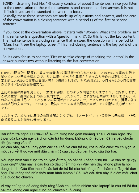 Korean Language Proficiency Test TOPIK 1 and 2 for foreigners Revealed for the first time how to respond to listening and reading tests.