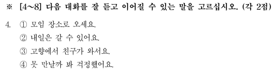 TOPIK-2, bài kiểm tra nghe, bí mật chính cho 1-5.