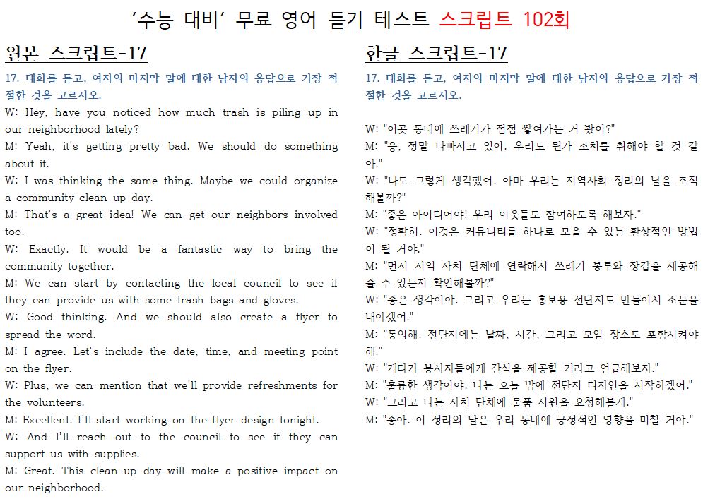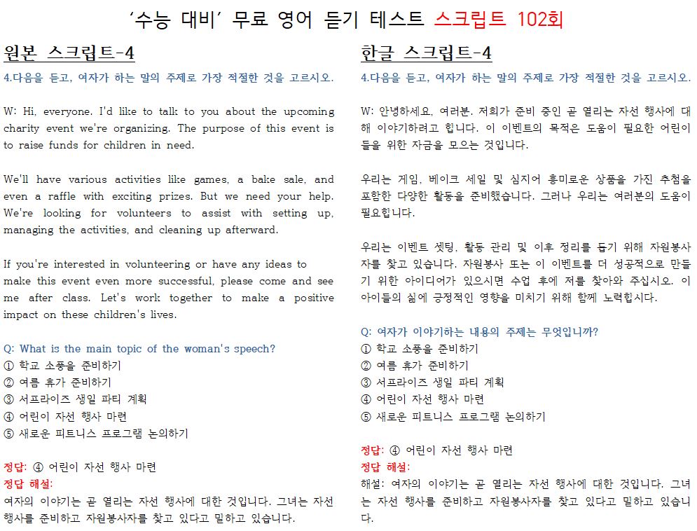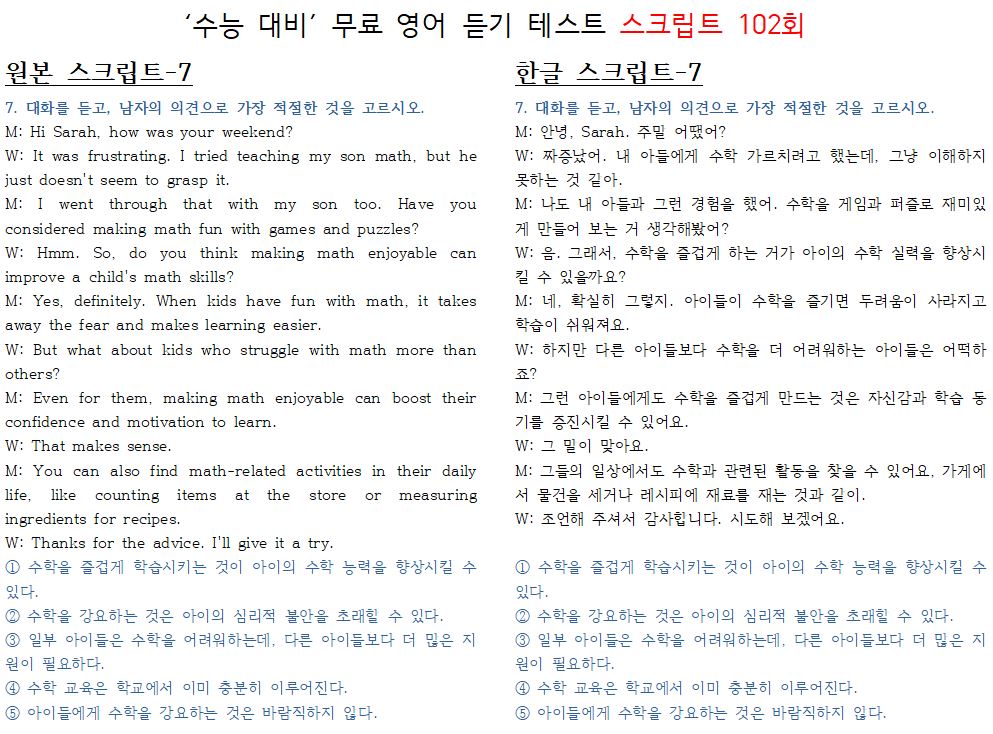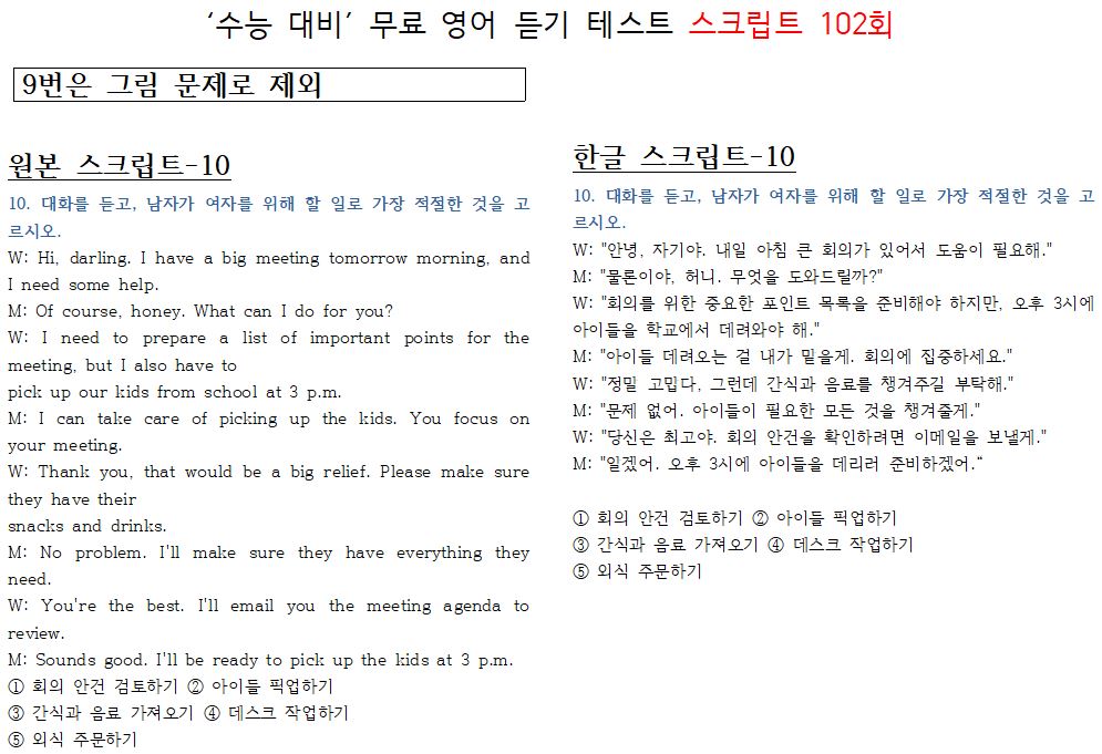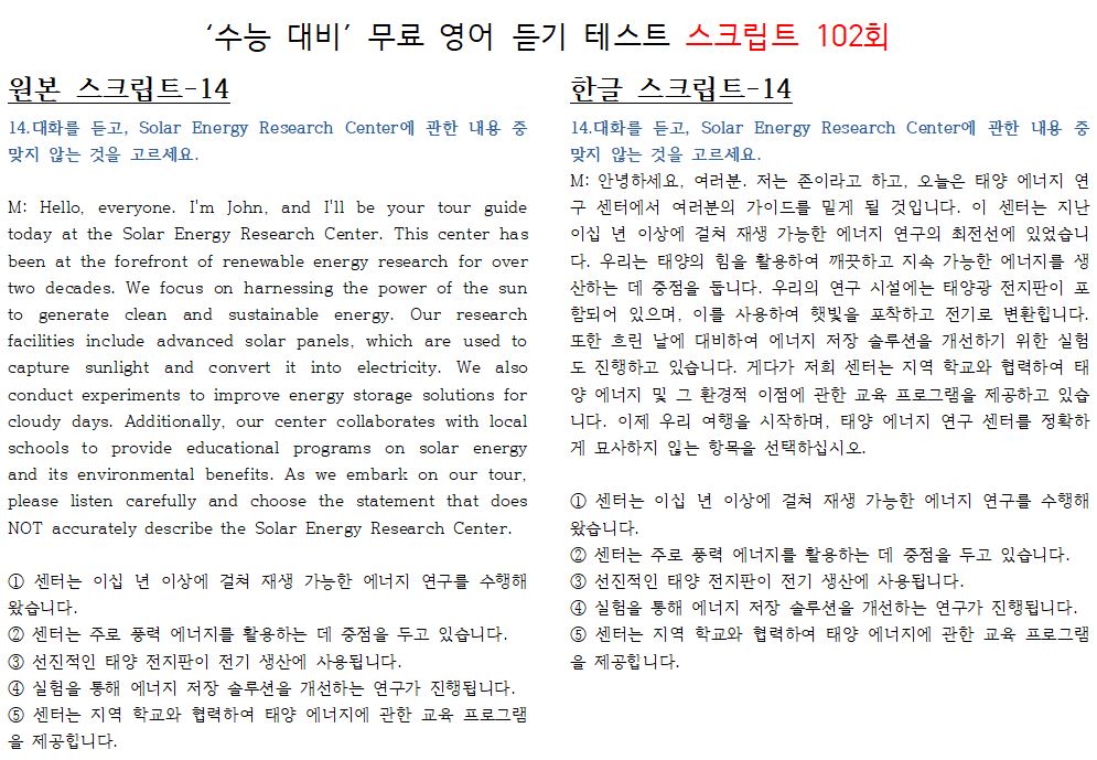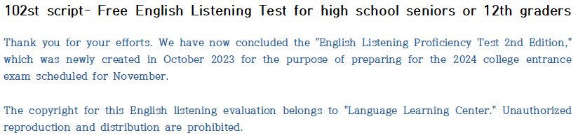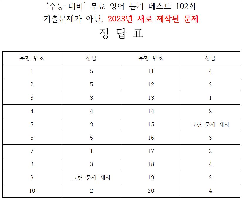 제 102회 -무료 수능 영어 듣기 "2024 대입"대비 2023.10월에 만들어진 최신 버젼입니다.