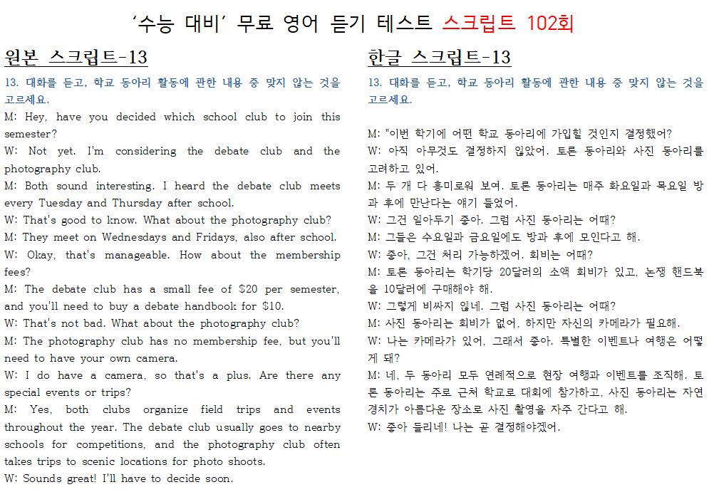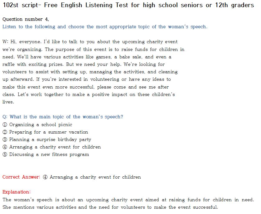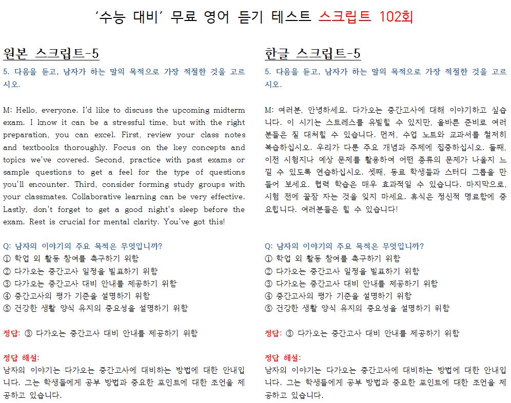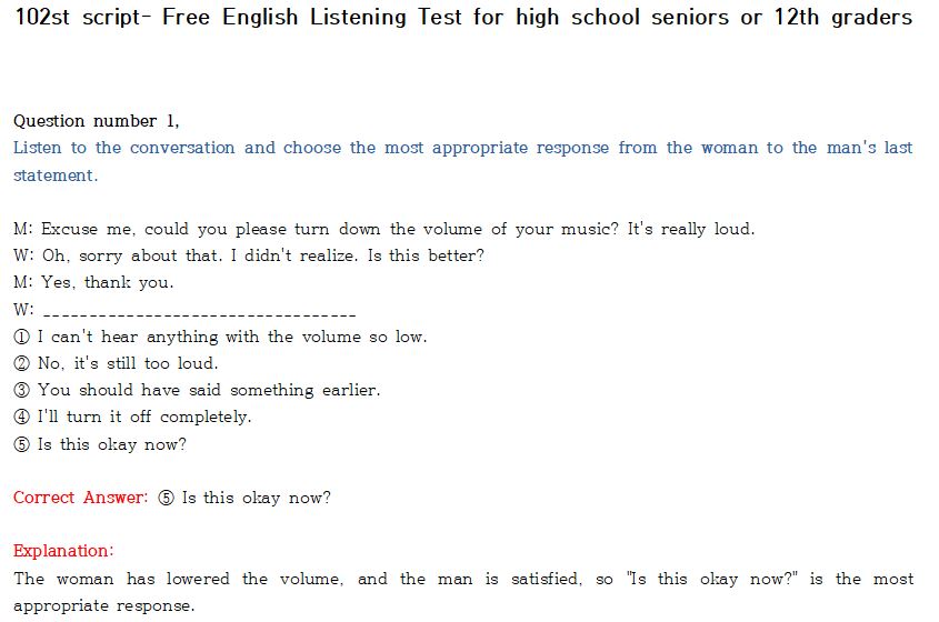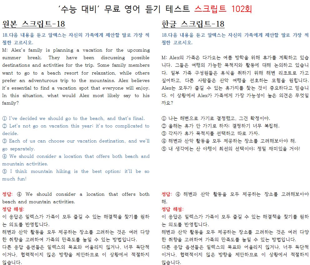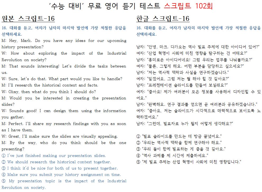 제 102회 -무료 수능 영어 듣기 "2024 대입"대비 2023.10월에 만들어진 최신 버젼입니다.