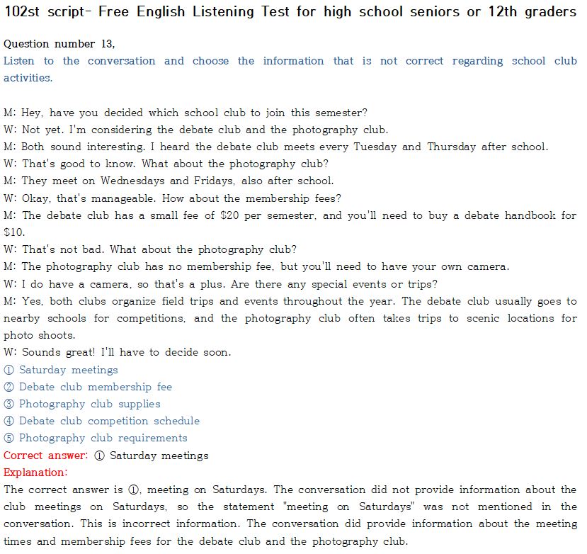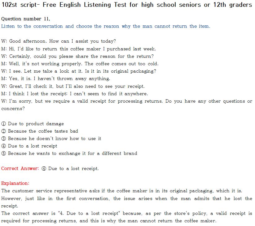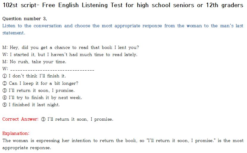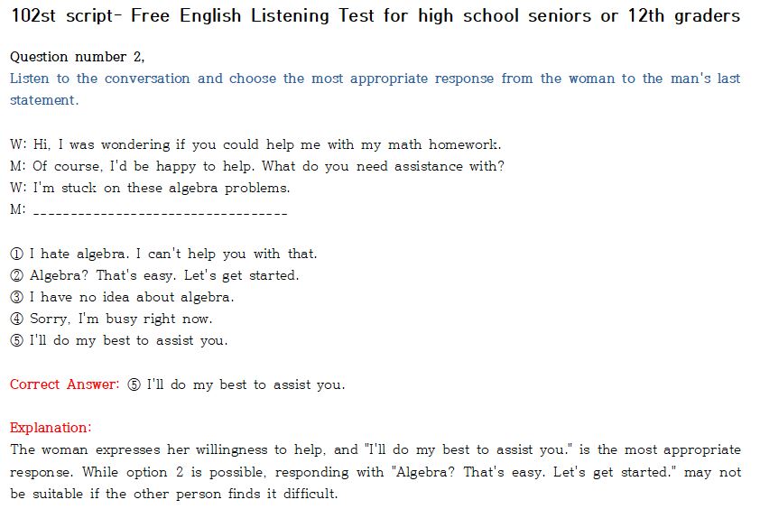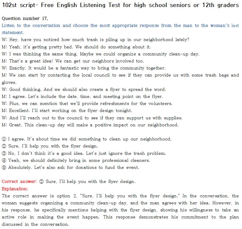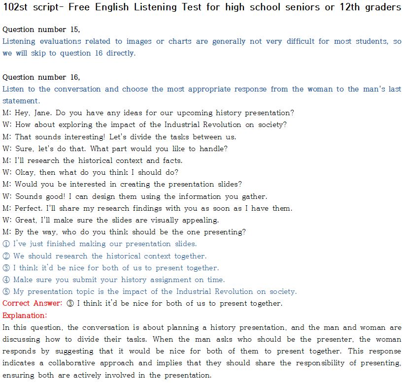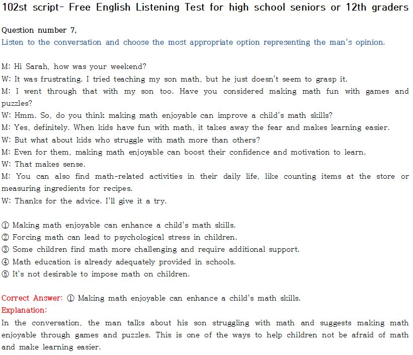 제 102회 -무료 수능 영어 듣기 "2024 대입"대비 2023.10월에 만들어진 최신 버젼입니다.