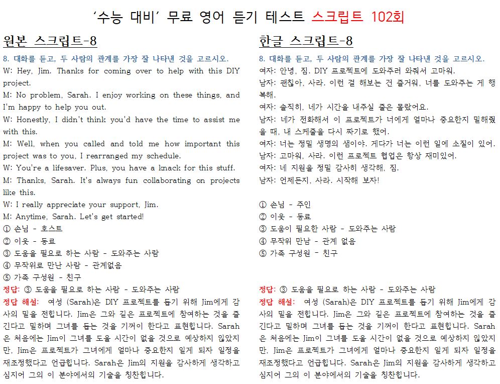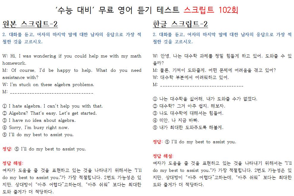 102-무료 수능 영어 듣기 "2024 대입"대비 최신-기본,상급 레벨