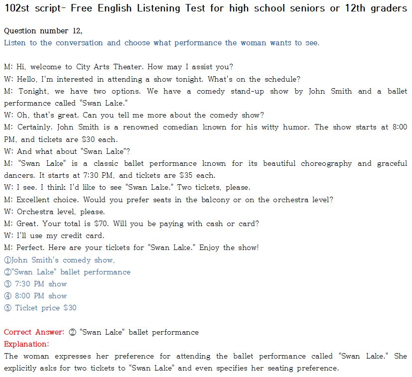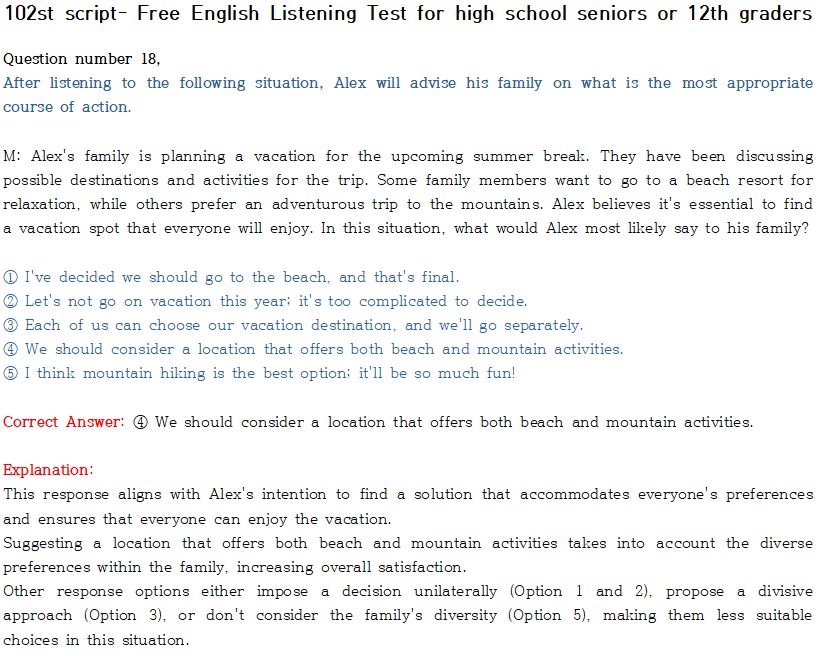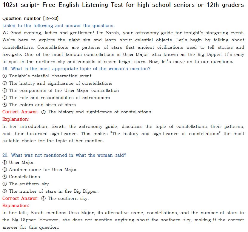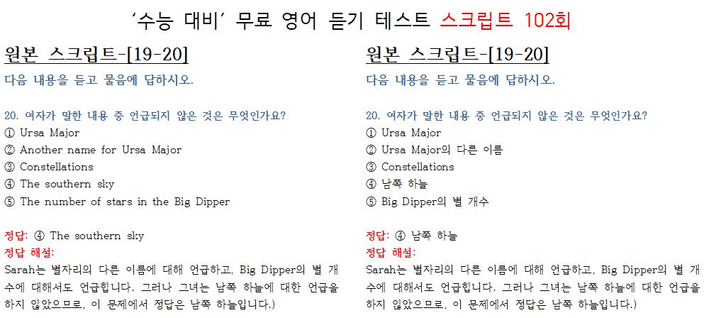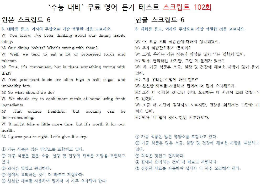 <제 102회-상급편 "전국 모의 고사 형" 수능 영어듣기 최신 버젼 >
